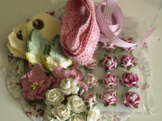 Men mitt i allt detta har jag lyckatas så in lite pysseltid. Fick en beställning på ett bröllopskort förra veckan av svärmor. Och hon hade egentligen inga krav eller önskningar. Hon sa att hon lita på mig. Och det kan vara lite svårt. Det blev i alla fall ett rosa och väldigt enkelt kort. Kände att jag inte hade inspirationen i mitt extremt stökiga rum. Så detta fick bli bra :)